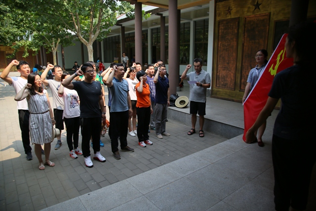 在纪念馆的门前,公司全体党员面对党旗重温了入党誓词。在中国共产党的正确领导下,我们正处于历史上最好的发展时期,我们不能忘记今天的美好生活是革命先辈用鲜血和生命换来的,党员同志们应该牢记入党时的庄严承诺,继承革命先辈们的奉献精神和牺牲精神。